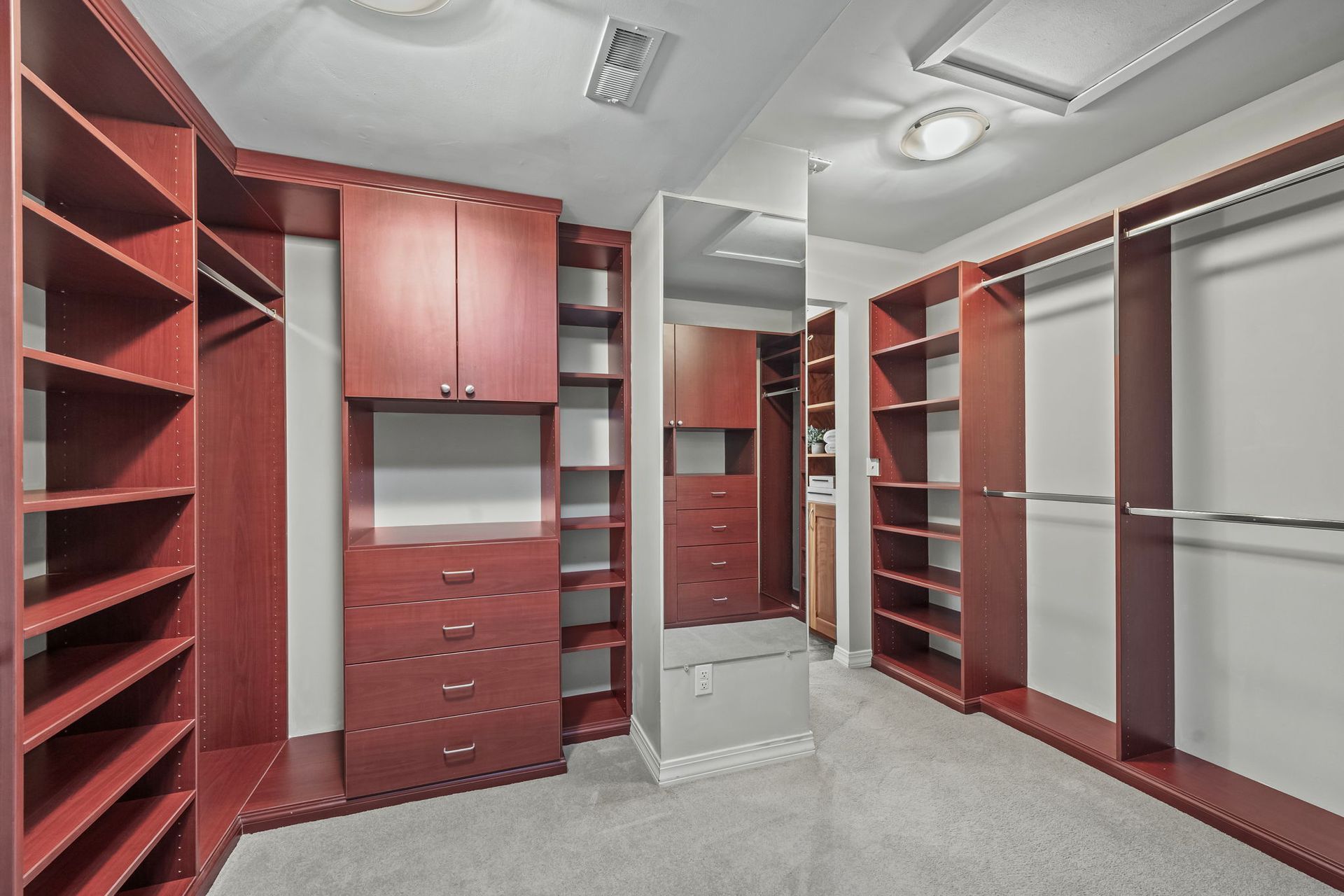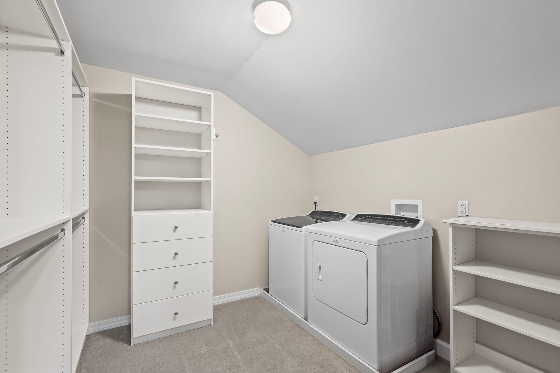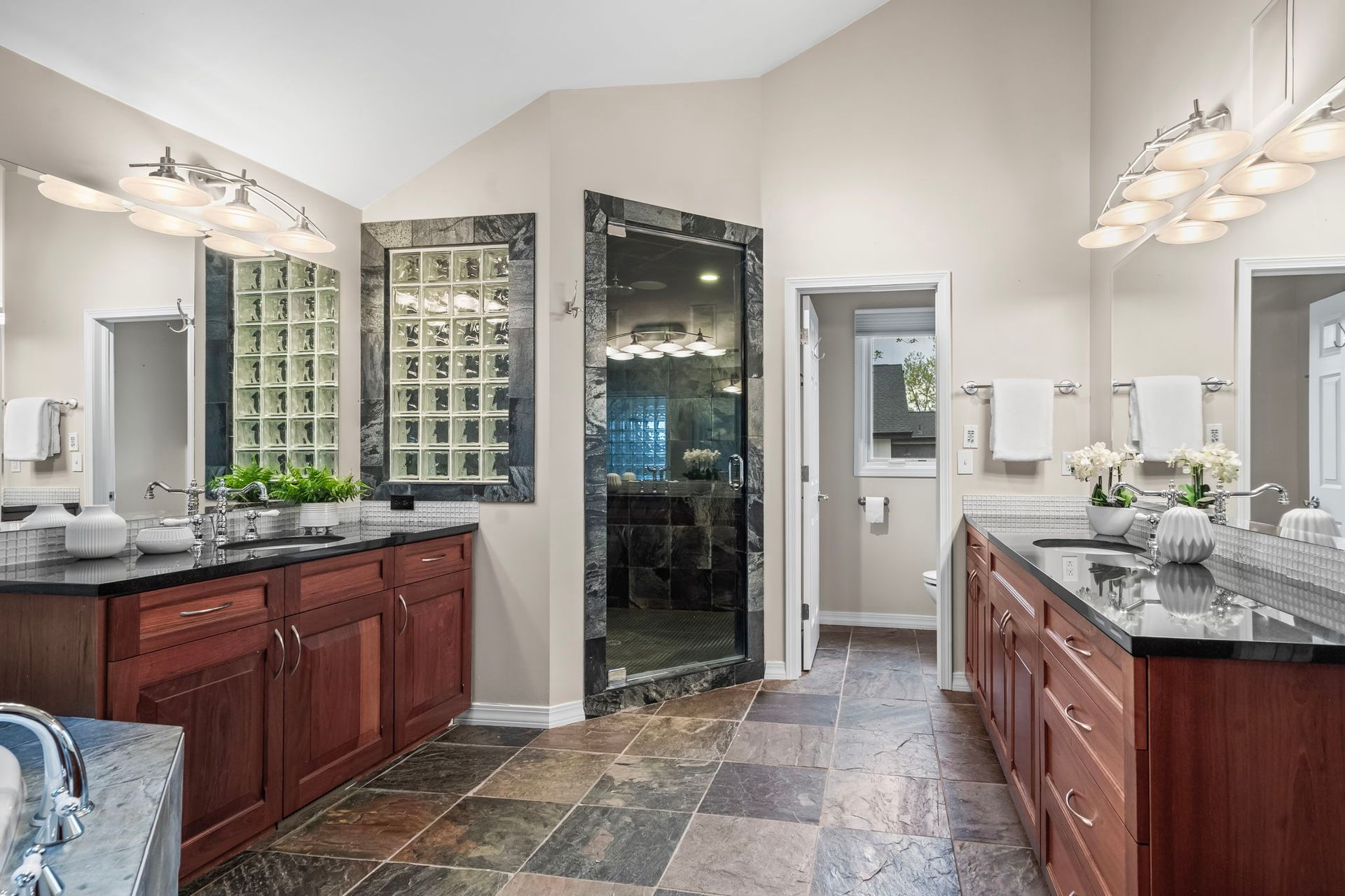 For those needing main floor living, there is a handicap accessible main floor bedroom suite with ensuite bath offering a large walk-in shower & radiant heat floors. The spacious upper floor primary suite is a true retreat with vaulted ceilings, gas fireplace, balcony & 5-piece bath with dual vanities, jetted tub & large walk-in steam shower. The generous sized walk-in closet includes a custom built-in organizer system and leads to the laundry room with included washer/dryer.